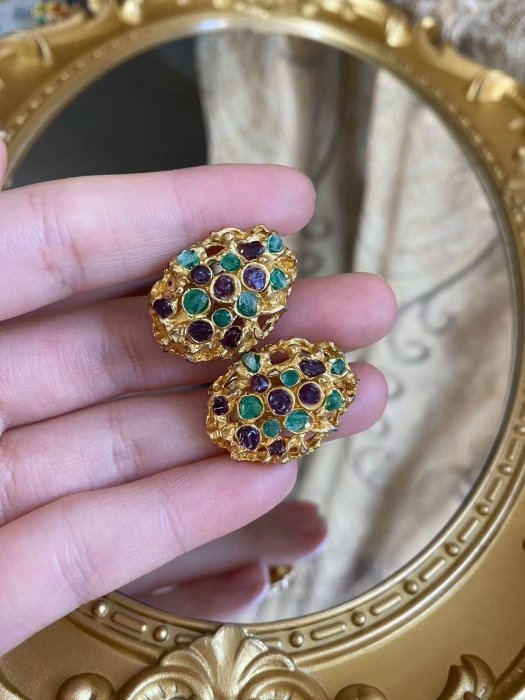 優寶購物《ubao.Tw》特貨品商城,黑貓宅配,取貨付款,嚴選中古vintage重工熔巖水晶耳夾,重達多克有壓實感,霧金熔巖鑲嵌綠紫玉石,顯現獨特歲月風華,尺寸精準左右對稱,上耳倍添氣質。中古回流孤品不退不換 | Yahoo拍賣