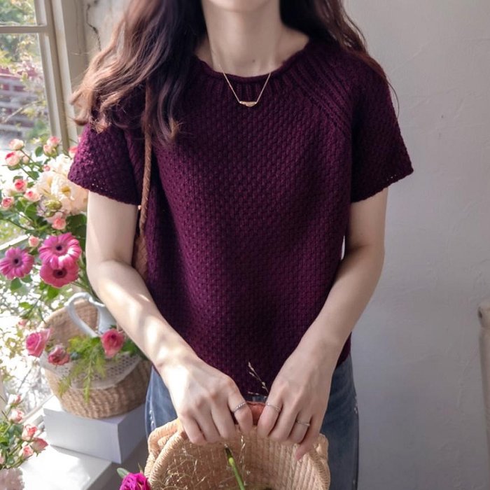 優寶購物《ubao.Tw》特貨品商城,黑貓宅配,取貨付款,Bellee 正韓 秋季華格夫短袖彈性針織衫上衣 (3色) 【0908-7】 | Yahoo拍賣