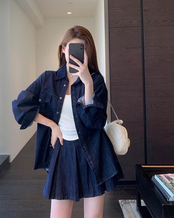 優寶購物《ubao.Tw》特貨品商城,黑貓宅配,取貨付款,. NL Select Shop .早秋新款 復古時髦牛仔套裝慵懶顯瘦襯衫高腰半身裙 | Yahoo拍賣