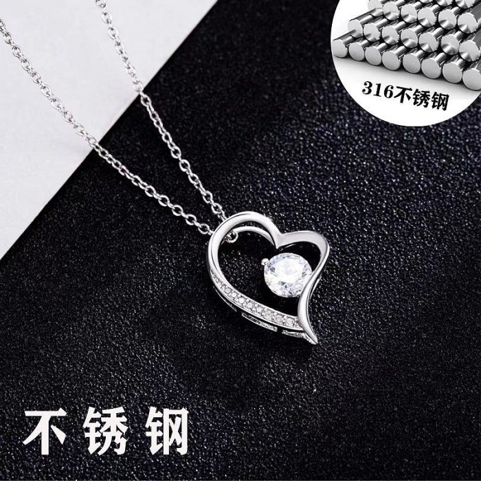 優寶購物《ubao.Tw》特貨品商城,黑貓宅配,取貨付款,不銹鋼鑲鉆愛心項鏈跨境歐美時尚百搭鈦鋼鎖骨鏈鋯石滿鉆心形吊墜 | Yahoo拍賣
