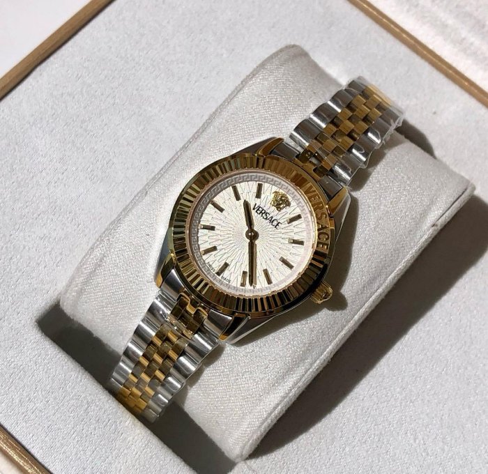 優寶購物《ubao.Tw》特貨品商城,黑貓宅配,取貨付款,Versace Greca Time Petite 白色錶盤 金色配銀色鋼錶帶 石英 女士手錶 VE9CA0224 | Yahoo拍賣