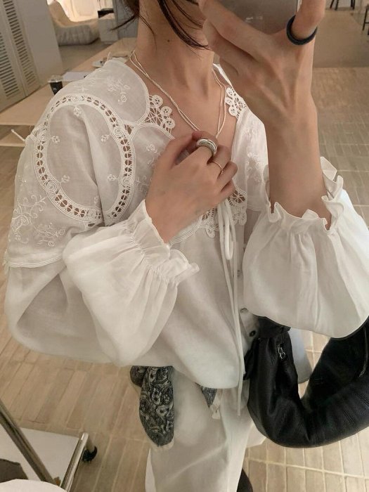 優寶購物《ubao.Tw》特貨品商城,黑貓宅配,取貨付款,韓標 🔅 精緻蕾絲拼接天絲麻衫 | Yahoo拍賣