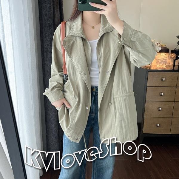 優寶購物《ubao.Tw》特貨品商城,黑貓宅配,取貨付款,KVLOVE SHOP〥外貿單 時尚條紋內裡苔原霧松綠寬鬆工裝長袖風衣外套〥特價 | Yahoo拍賣