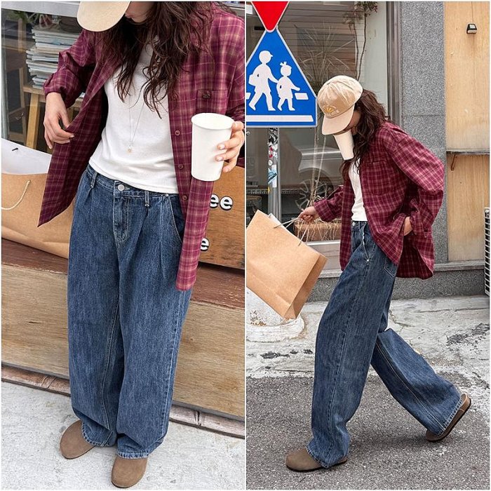 優寶購物《ubao.Tw》特貨品商城,黑貓宅配,取貨付款,Bellee 正韓 顯瘦版型皮標雙針褶寬管牛仔褲 S-L 【0908-29】 | Yahoo拍賣