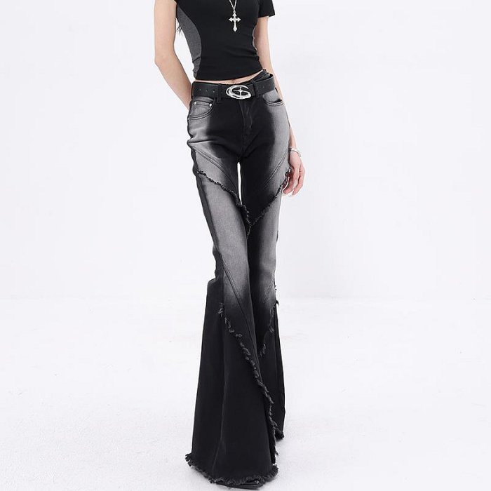 優寶購物《ubao.Tw》特貨品商城,黑貓宅配,取貨付款,新款QIUQIU STUDIO高個子加長漸變毛邊微喇牛仔褲女設計感修身喇叭褲 | Yahoo拍賣