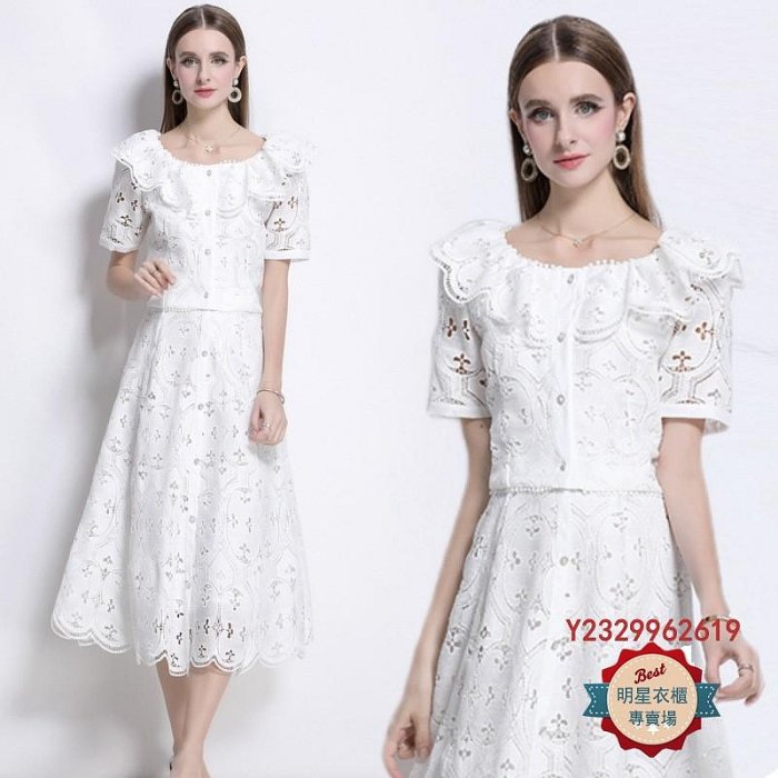 優寶購物《ubao.Tw》特貨品商城,黑貓宅配,取貨付款,明星衣櫃=2025新款白色套裝裙高級感小眾方領蕾絲鏤空短上衣半身裙兩件套 | Yahoo拍賣