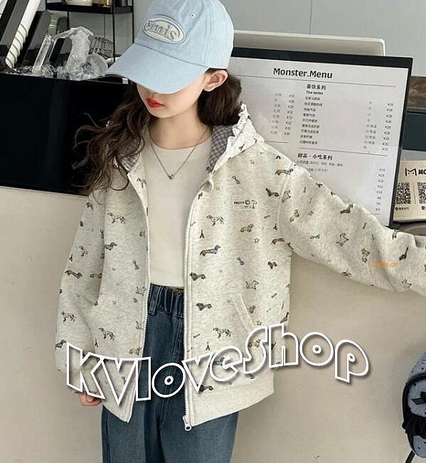優寶購物《ubao.Tw》特貨品商城,黑貓宅配,取貨付款,KVLOVE SHOP〥外貿單 韓系時尚狗狗印花大小兒童花邊連帽寬鬆長袖外套〥特價 | Yahoo拍賣