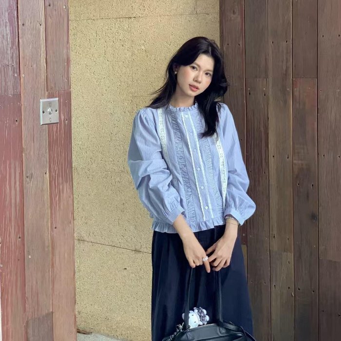 優寶購物《ubao.Tw》特貨品商城,黑貓宅配,取貨付款,【熱銷款】韓系蕾絲木耳邊拼接2025早秋季新款減齡長袖襯衫上衣女TW635 | Yahoo拍賣