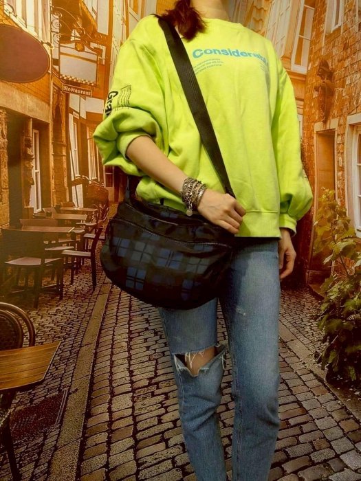優寶購物《ubao.Tw》特貨品商城,黑貓宅配,取貨付款,韓國 格紋風 防水布 彎月斜背包 | Yahoo拍賣