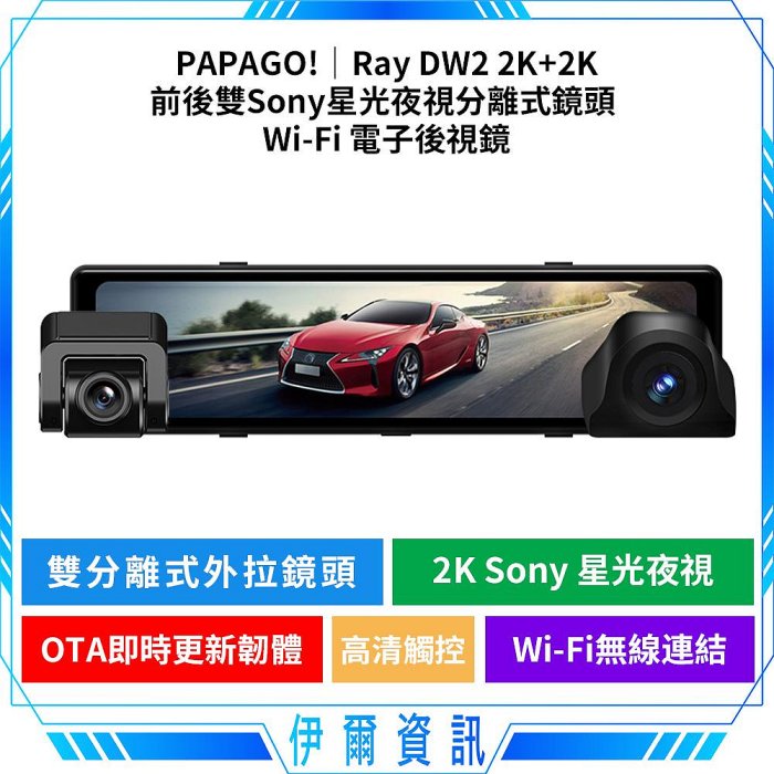優寶購物《ubao.Tw》特貨品商城,黑貓宅配,取貨付款,PAPAGO!RAY Power 2K 前後雙錄SONY星光夜視 WIFI 電子後視鏡 GPS測速提醒 WIFI互聯 | Yahoo拍賣
