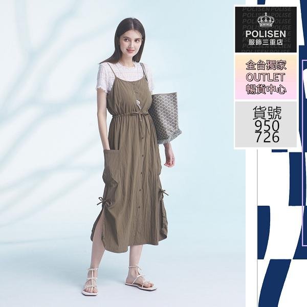 優寶購物《ubao.Tw》特貨品商城,黑貓宅配,取貨付款,POLISEN聖路加設計師服飾(950-726)細肩帶排釦腰抽繩造型長洋裝原價3690元特價1107元 | Yahoo拍賣