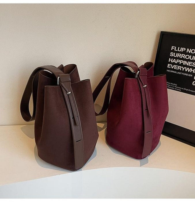 優寶購物《ubao.Tw》特貨品商城,黑貓宅配,取貨付款,IM 五色高級簡約多背法複合超柔麂皮絨寬肩帶大容量水桶包/復古反皮磨砂絨側背大包 | Yahoo拍賣