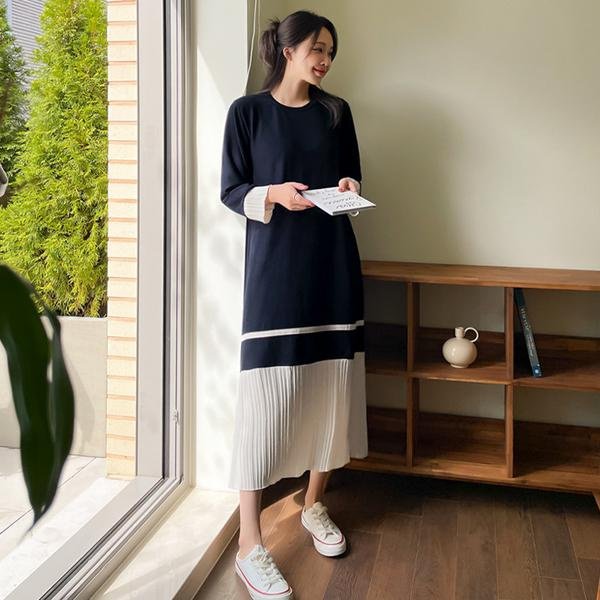 優寶購物《ubao.Tw》特貨品商城,黑貓宅配,取貨付款,bibi 正韓 拚色褶皺拼接長連身裙【 SD085 】 | Yahoo拍賣
