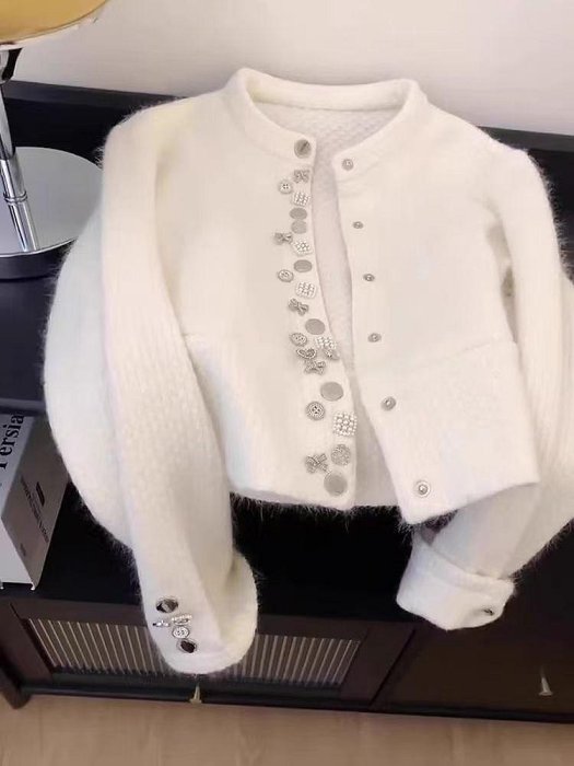 優寶購物《ubao.Tw》特貨品商城,黑貓宅配,取貨付款,春秋新款毛茸茸針織開衫上衣小香風白色重工浣熊絨毛衣外套 P | Yahoo拍賣