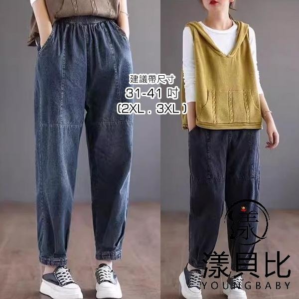 優寶購物《ubao.Tw》特貨品商城,黑貓宅配,取貨付款,漾貝比【9155617】中大尺碼女裝 鬆緊腰頭車線縮口瘦腿哈倫牛仔褲.黑/藍(31-41) | Yahoo拍賣