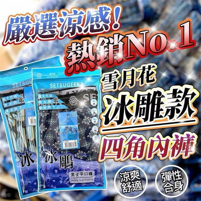 優寶購物《ubao.Tw》特貨品商城,黑貓宅配,取貨付款,【購狂倉儲】冰雕內褲 雪月花內褲 四角內褲 四角褲 涼感內褲 冰絲內褲 內褲 男四角褲 男生四角內褲 男性內褲 | Yahoo拍賣
