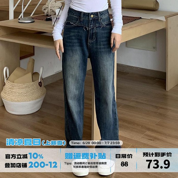 優寶購物《ubao.Tw》特貨品商城,黑貓宅配,取貨付款,新款橘子樹在哪兒深藍色設計感直筒牛仔褲女春季高腰窄版闊腿拖地褲潮 | Yahoo拍賣