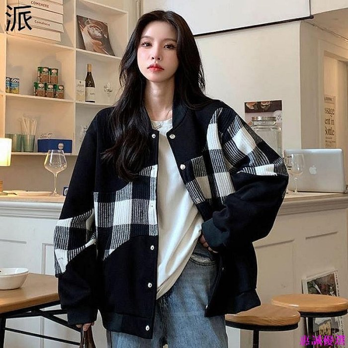 優寶購物《ubao.Tw》特貨品商城,黑貓宅配,取貨付款,美式復古撞色拼接格子棒球服 春秋季新款寬鬆韓版學生百搭外套女潮-惠誠優選 | Yahoo拍賣