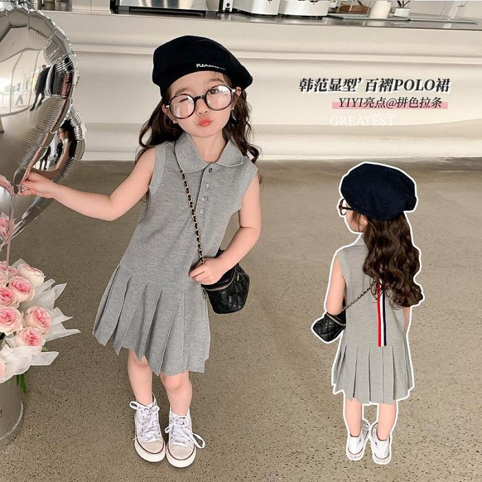 優寶購物《ubao.Tw》特貨品商城,黑貓宅配,取貨付款,童裝女童夏季公主裙時尚洋氣甜美寶寶Polo翻領學院無袖連衣裙2189 | Yahoo拍賣