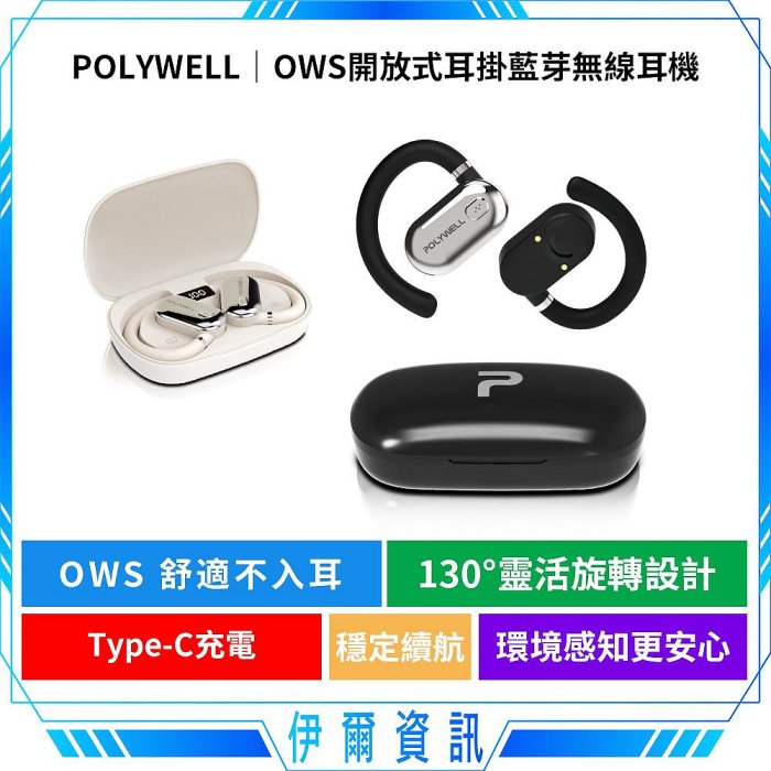 優寶購物《ubao.Tw》特貨品商城,黑貓宅配,取貨付款,POLYWELL 寶利威爾 OWS開放式耳掛藍芽無線耳機 觸控操作 不入耳配戴舒適 大音量 TPC充電 130度調整角度 | Yahoo拍賣