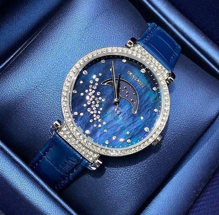 優寶購物《ubao.Tw》特貨品商城,黑貓宅配,取貨付款,jian SWAROVSKI Passage Moon Phase 藍色珍珠貝母錶盤月相 女士 石英手錶 5613320 施華洛世奇腕錶 | Yahoo拍賣