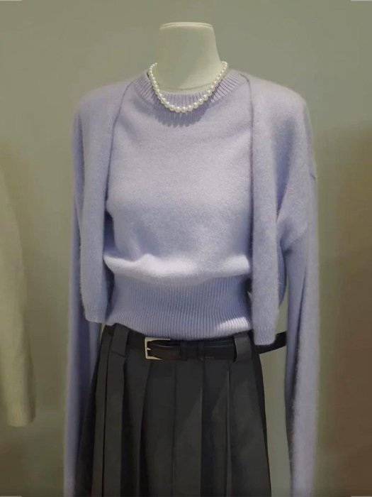 優寶購物《ubao.Tw》特貨品商城,黑貓宅配,取貨付款,韓國名媛 紫色優雅圓領無袖針織毛海背心上衣+圓領外套兩件組 | Yahoo拍賣