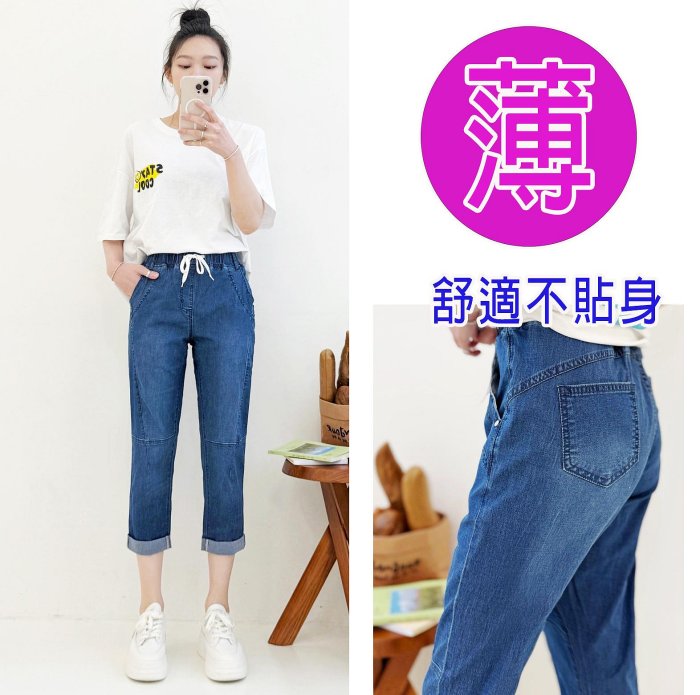 優寶購物《ubao.Tw》特貨品商城,黑貓宅配,取貨付款,現貨《3L》中腰3535伸縮腰頭薄款寬鬆版彈性牛仔褲七分褲反折褲/大尺碼牛仔褲【時尚Tina】鑽石比例 | Yahoo拍賣