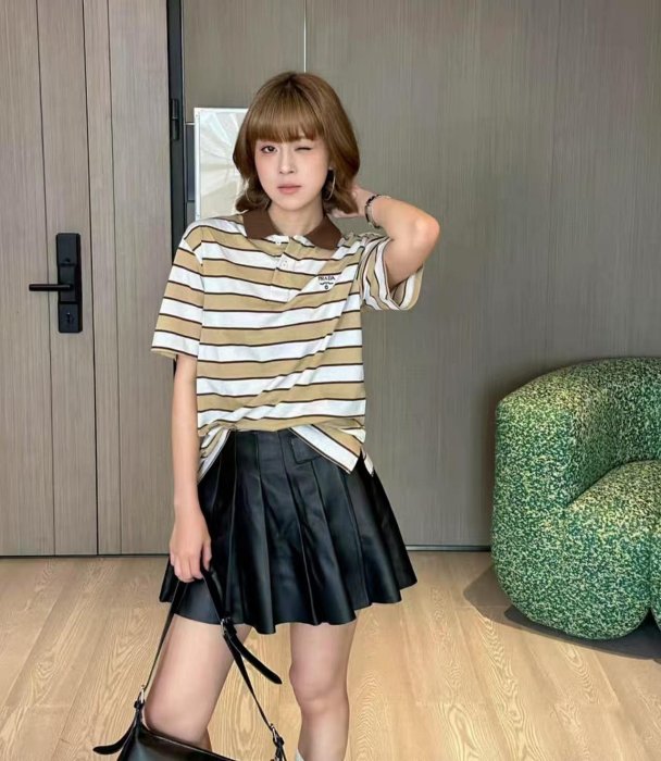 優寶購物《ubao.Tw》特貨品商城,黑貓宅配,取貨付款,翡翠王.一元起標 全新 男女同款 PRADA 杏色條紋短袖POLO衫 L/XL 假貨包退.標多少賣多少 | Yahoo拍賣