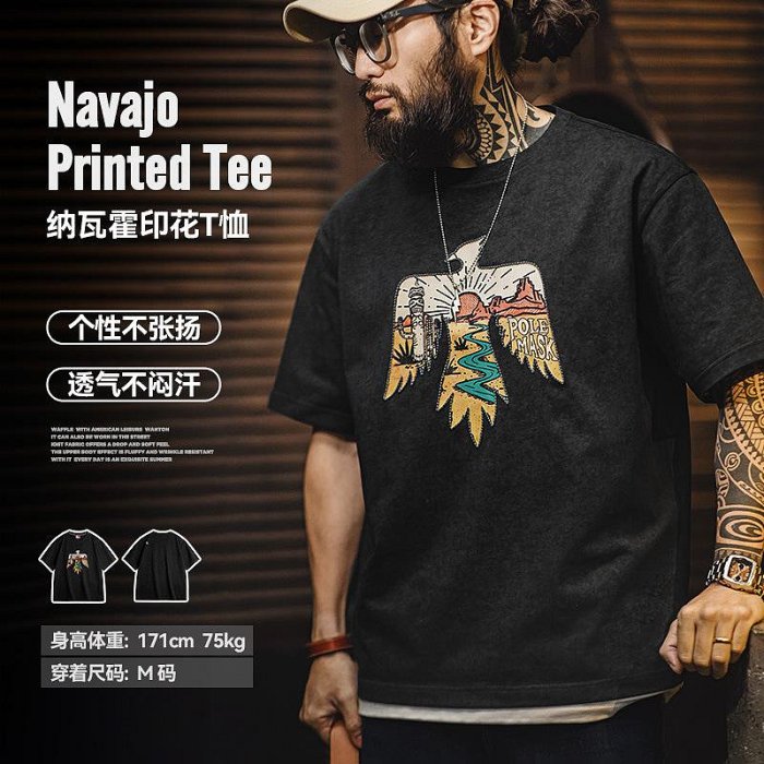 優寶購物《ubao.Tw》特貨品商城,黑貓宅配,取貨付款,馬登工裝美式復古印第安雷鳥T恤棉重磅民族風刺繡印花短袖男夏季 | Yahoo拍賣