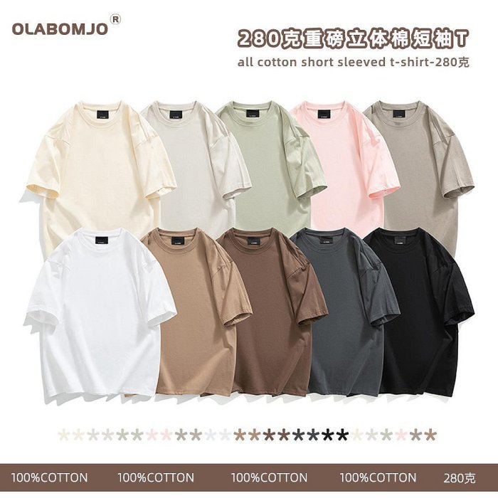 優寶購物《ubao.Tw》特貨品商城,黑貓宅配,取貨付款,OLA 春秋款男士280克重磅純棉t恤休閑款圓領寬松潮流百搭上衣 | Yahoo拍賣