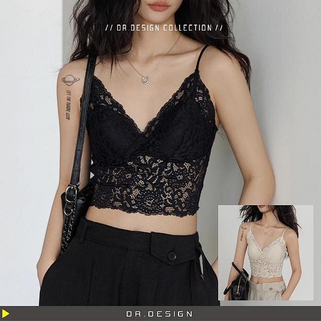優寶購物《ubao.Tw》特貨品商城,黑貓宅配,取貨付款,►DR.DESIGN│小眾百搭│辣妹風性感蕾絲吊帶背心 短款內搭上衣│法式細肩帶│鏤空短版辣妹背心 米杏/黑 DR34576 | Yahoo拍賣