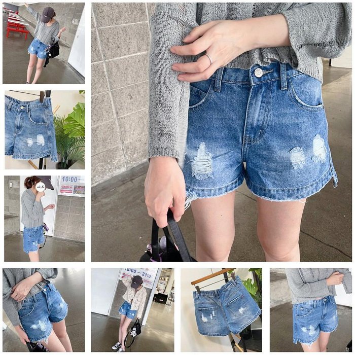 優寶購物《ubao.Tw》特貨品商城,黑貓宅配,取貨付款,*EBO_KR*韓【韓國加碼獨家放送優惠】先搶先贏 買到賺到$699→520 後鬆緊超瘦貓抓藍小刷破牛仔短褲 | Yahoo拍賣