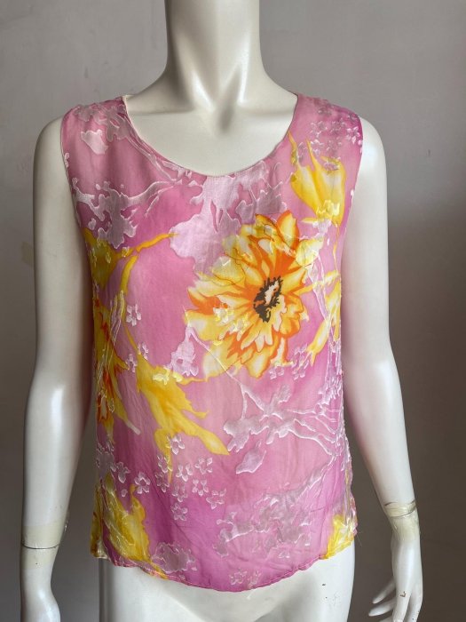 優寶購物《ubao.Tw》特貨品商城,黑貓宅配,取貨付款,嚴選vintage古著粉色真絲背心 黃花配色 純粹花紋 舒適穿著 修身設計 天然風味 -6794 真絲 花朵 時尚 | Yahoo拍賣