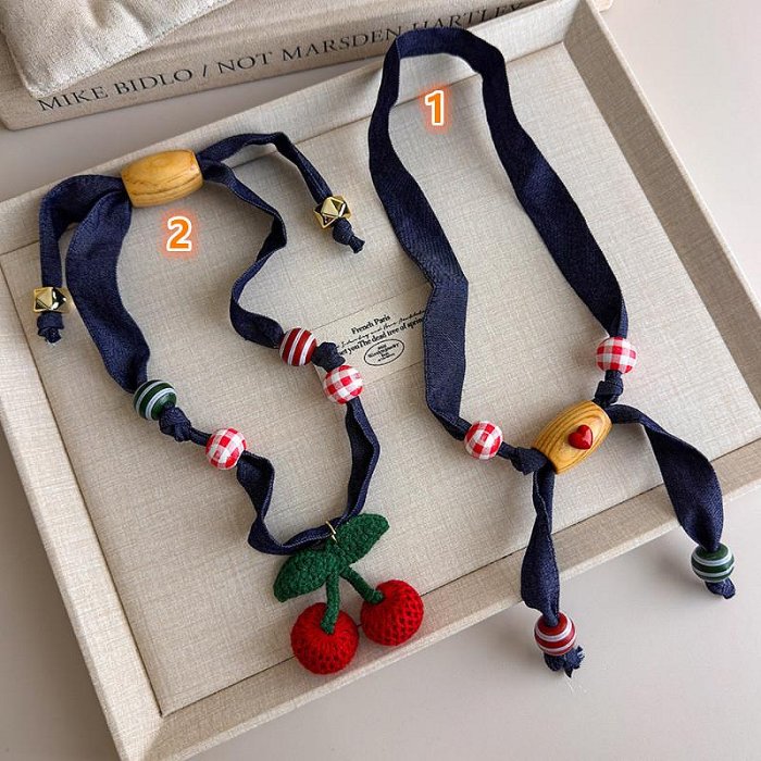 優寶購物《ubao.Tw》特貨品商城,黑貓宅配,取貨付款,{朵朵韓飾} C5142 韓國直送(正韓) 個性復古牛仔布藝串珠櫻桃頸鍊項鍊(二款) | Yahoo拍賣