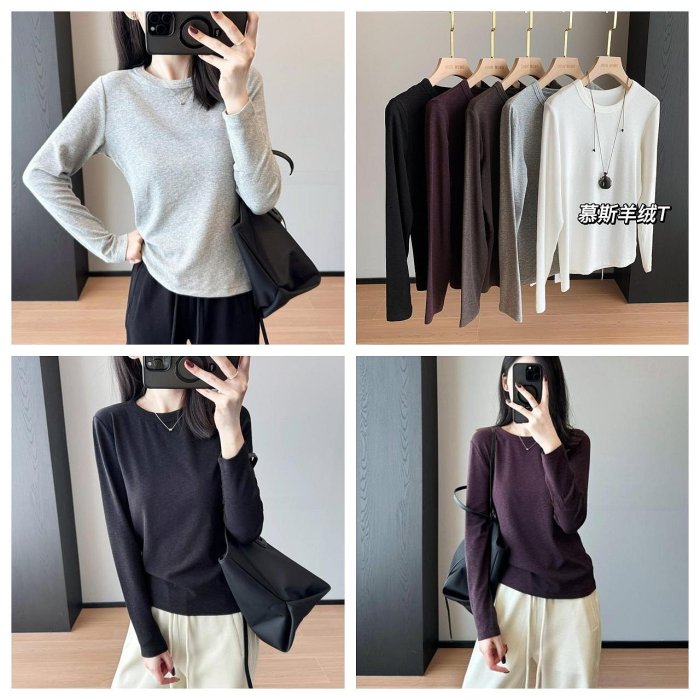 優寶購物《ubao.Tw》特貨品商城,黑貓宅配,取貨付款,早秋新款 慕斯羊絨T!軟軟糯糯竹節棉寬鬆磨毛基礎打底T恤 [Classique*真經典] 092403 | Yahoo拍賣