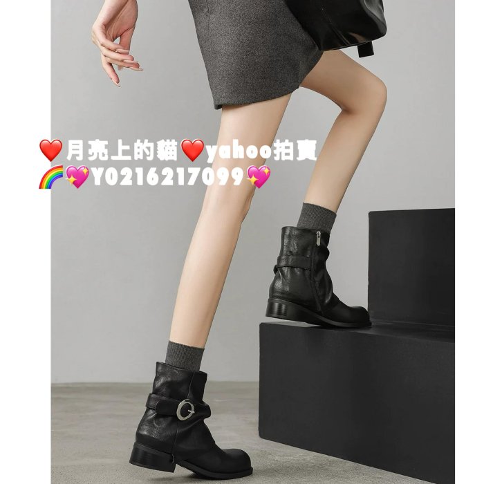 優寶購物《ubao.Tw》特貨品商城,黑貓宅配,取貨付款,❤月亮上的貓❤真皮~太好穿了~上腳超美顯瘦顯高顯腿長や好品質❤超好看秋冬の時尚百搭舒適圓頭金屬扣粗跟斗篷靴褲管靴英倫風騎士靴中跟馬丁靴 | Yahoo拍賣