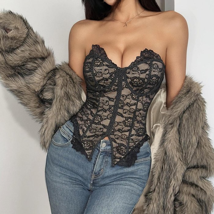 優寶購物《ubao.Tw》特貨品商城,黑貓宅配,取貨付款,美胸上衣 魚骨馬甲 魚骨胸衣 性感內衣 馬甲文胸 馬甲背心 INS風低胸辣妹蕾絲花邊性感裹胸款網紅必備修身鋼圈抹胸上衣71260 SE040 | Yahoo拍賣