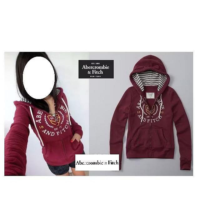 優寶購物《ubao.Tw》特貨品商城,黑貓宅配,取貨付款,§上鉌嚴選 A&F Abercrombie Logo Full-Zip Hoodie 字母刺繡內刷毛超柔軟連帽外套-酒紅 | Yahoo拍賣