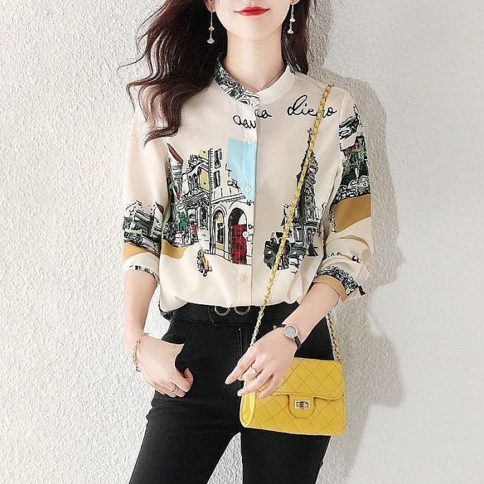 優寶購物《ubao.Tw》特貨品商城,黑貓宅配,取貨付款,復古印花雪紡襯衫歐貨時尚洋氣上衣女設計感小眾長袖襯衫秋季新款 | Yahoo拍賣
