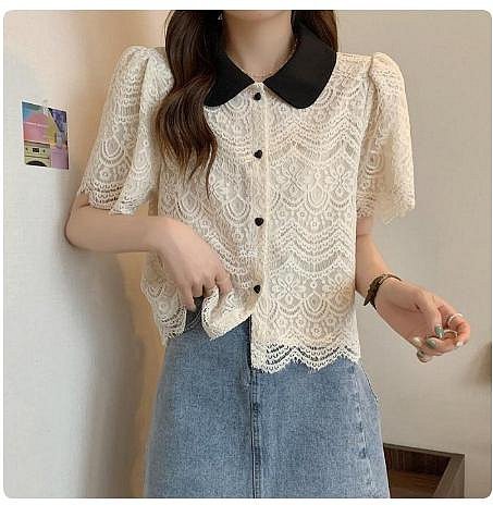 優寶購物《ubao.Tw》特貨品商城,黑貓宅配,取貨付款,大碼領針織襯衫女短袖夏季胖mm法式拼接短款上W | Yahoo拍賣