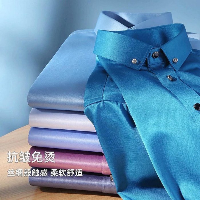 優寶購物《ubao.Tw》特貨品商城,黑貓宅配,取貨付款,新款長袖襯衫 輕奢緞面襯衫男長袖修身彈力免燙工裝襯衣鉆扣純色絲滑垂感襯衫男7件 | Yahoo拍賣