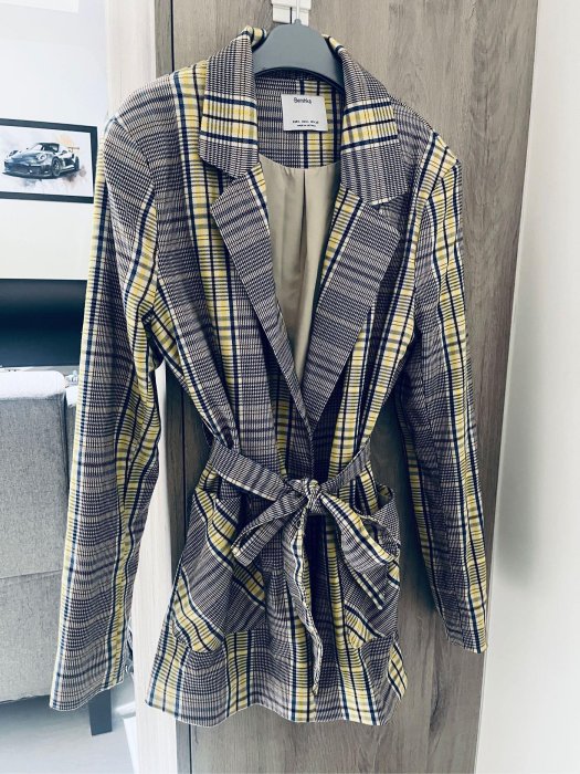優寶購物《ubao.Tw》特貨品商城,黑貓宅配,取貨付款,西班牙PULL&BEAR 細格紋修身ZARA MANGO Paul Joe款綁帶西裝外套L號 | Yahoo拍賣
