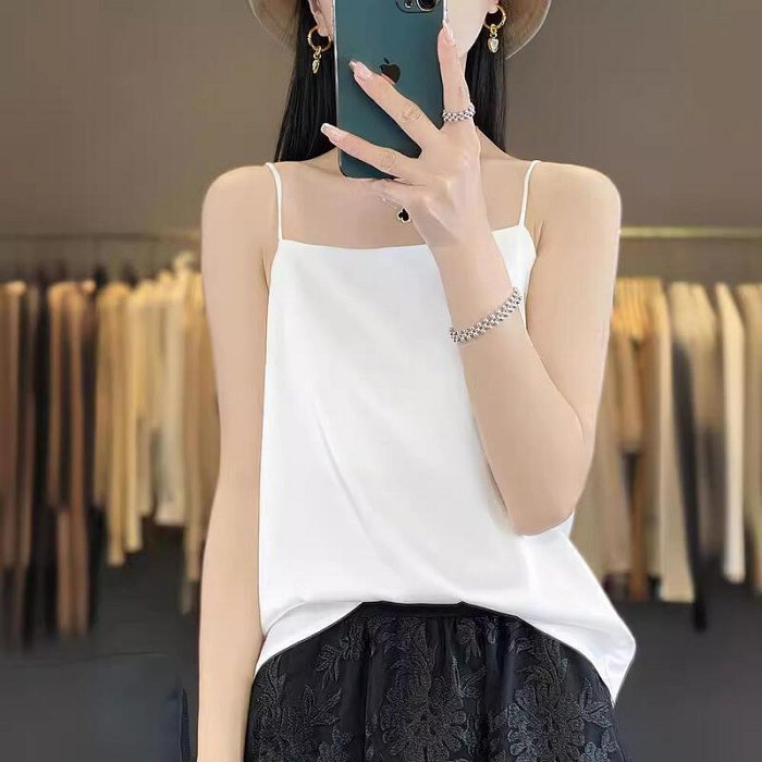 優寶購物《ubao.Tw》特貨品商城,黑貓宅配,取貨付款,【熱銷】夏季新款吊帶背心女純色真絲無袖西裝內搭醋酸緞面一字領百搭上衣 | Yahoo拍賣