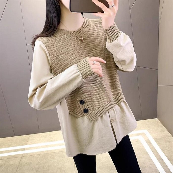 優寶購物《ubao.Tw》特貨品商城,黑貓宅配,取貨付款,【熱銷】春季新款 圓領針織衫拼接假二件套頭女 | Yahoo拍賣