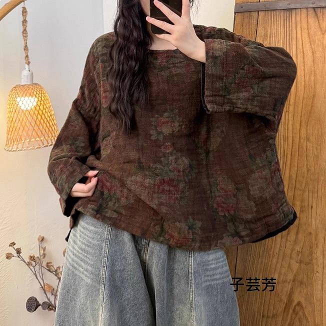 優寶購物《ubao.Tw》特貨品商城,黑貓宅配,取貨付款,【子芸芳】2025秋季亞麻復古休閒百搭炒色做舊雙層麻印花套頭上衣 | Yahoo拍賣