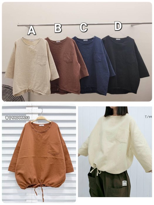 優寶購物《ubao.Tw》特貨品商城,黑貓宅配,取貨付款,正韓 korea韓國進口powder藍色單口袋下擺綁帶7分袖棉麻衫 現貨 小齊韓衣 | Yahoo拍賣