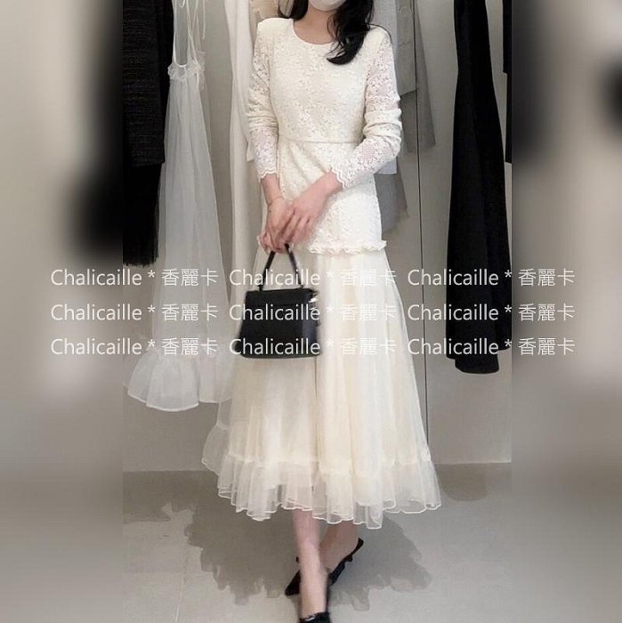 優寶購物《ubao.Tw》特貨品商城,黑貓宅配,取貨付款,Chalicaille * 香麗卡。正韓。小香蕾絲拼接下公主紗料假兩件長洋裝 S-M | Yahoo拍賣