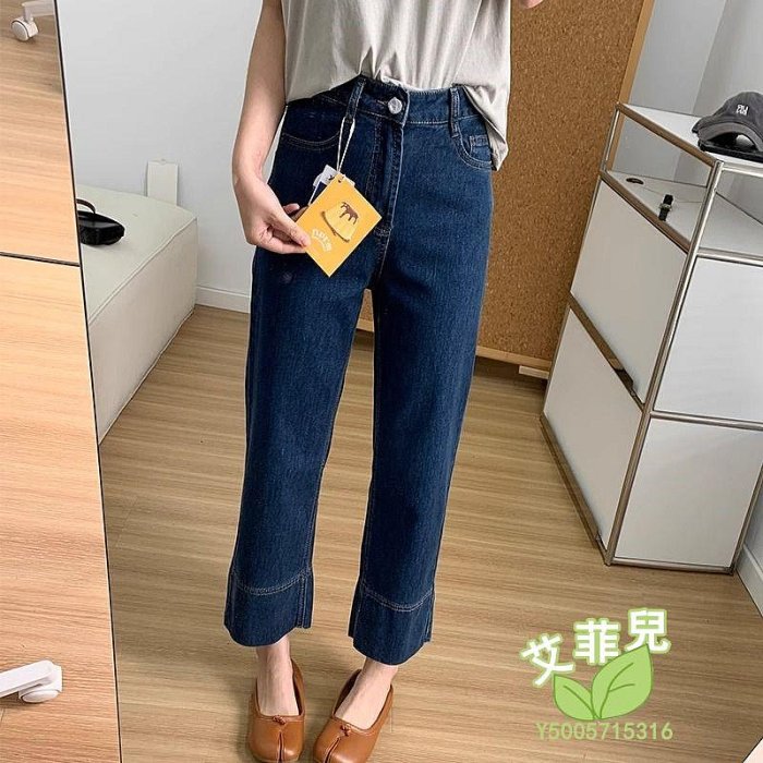 優寶購物《ubao.Tw》特貨品商城,黑貓宅配,取貨付款,艾菲兒=彈力直筒牛仔褲顯瘦窄版女早秋款寬松高腰小個子九分闊腿褲 | Yahoo拍賣