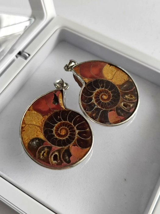 優寶購物《ubao.Tw》特貨品商城,黑貓宅配,取貨付款,嚴選特殊礦化菊石對開情侶項鏈吊墜,S925銀鑲彩邊螺紋背面,百搭設計任你選。編號D179 菊石 項鍊 吊墜 | Yahoo拍賣