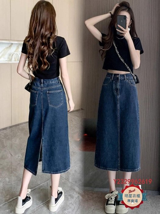 優寶購物《ubao.Tw》特貨品商城,黑貓宅配,取貨付款,明星衣櫃=中長款后開叉牛仔裙女早秋150cm小個子穿搭高腰a字包臀裙半身裙子 | Yahoo拍賣